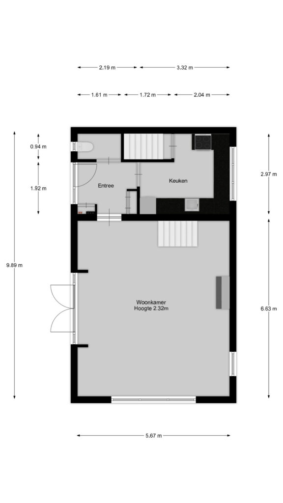 The charming farmhouse-style side door opens into the hallway with a separate toilet. At the front of the house, the bright living and dining room with fireplace offers both warmth and comfort. Double doors connect seamlessly to the sunny garden, blending indoor and outdoor living.