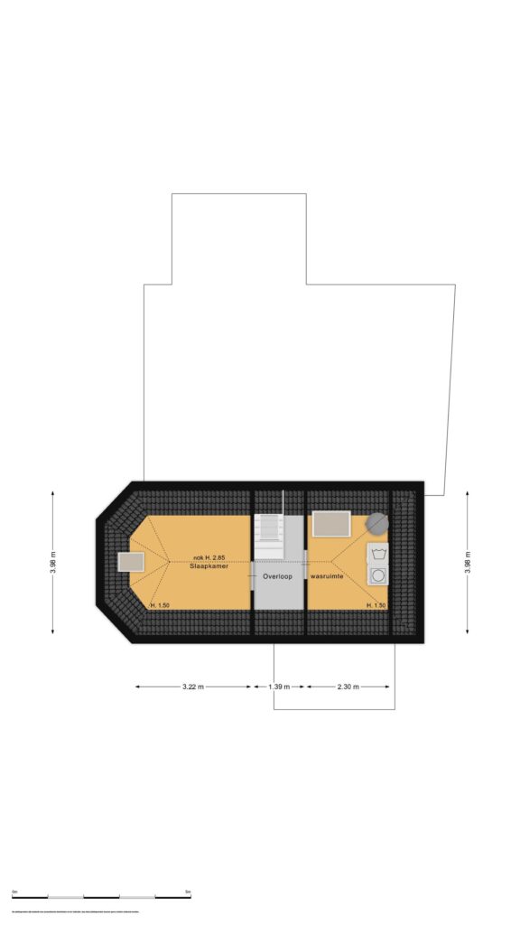Via een vaste trap bereikt u de geïsoleerde zolder met een ruime slaapkamer en een kamer met wasmachines. Er kan desgewenst een dakkapel geplaatst worden (vergunning reeds aanwezig).