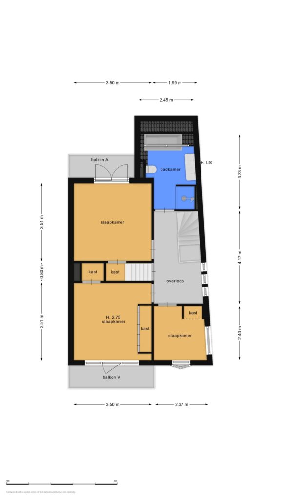 De eerste verdieping beschikt over drie slaapkamers, waaronder een ruime ouderslaapkamer met airconditioning en toegang tot een overdekt balkon. De slaapkamer aan de achterzijde heeft openslaande deuren naar een tweede balkon, en de derde kamer is speels ingericht met een ingebouwde hoogslaper en bureauhoek. De moderne badkamer is luxe afgewerkt met een ligbad, inloopdouche, dubbele wastafel, tweede toilet en designradiator.