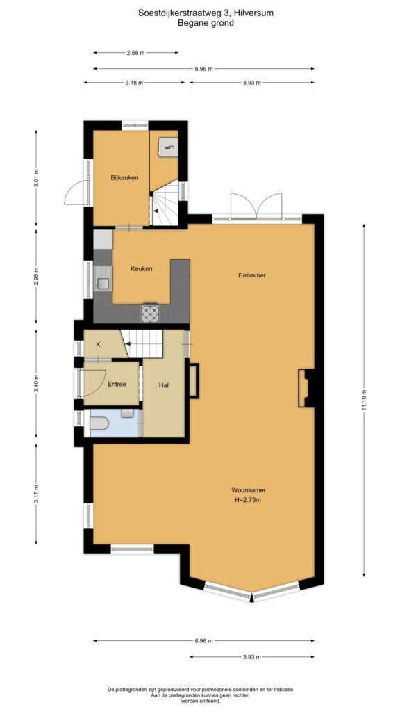 Via de entree komt u in de vestibule en ruime hal. Hier bevindt zich het gastentoilet met fonteintje. De woonkamer is heerlijk licht en heeft een U-vormige indeling, een sfeervolle houtkachel en openslaande deuren naar de tuin. De royale woonkeuken is voorzien van moderne inbouwapparatuur en biedt toegang tot de bijkeuken, waar de wasmachine netjes is weggewerkt in een inbouwkast. Vanuit de bijkeuken is de kelder bereikbaar via een vaste trap.