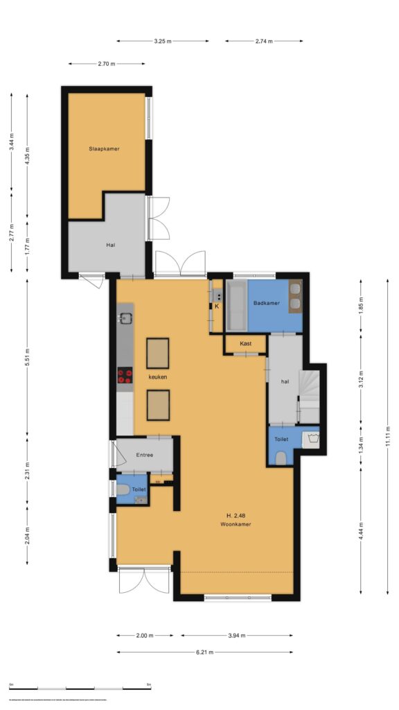 – 3 slaapkamers (1 op de begane grond, 2 op de verdieping)